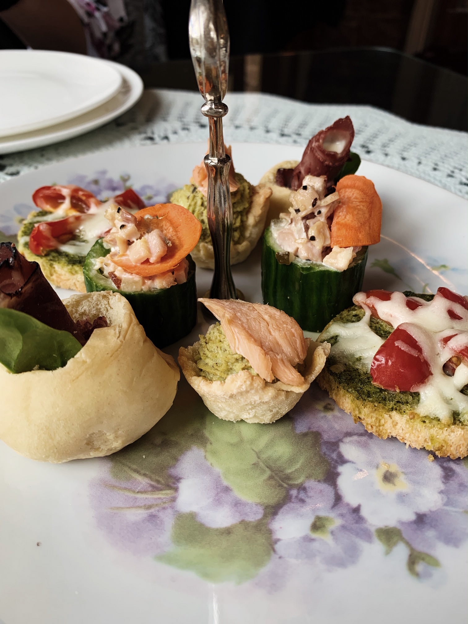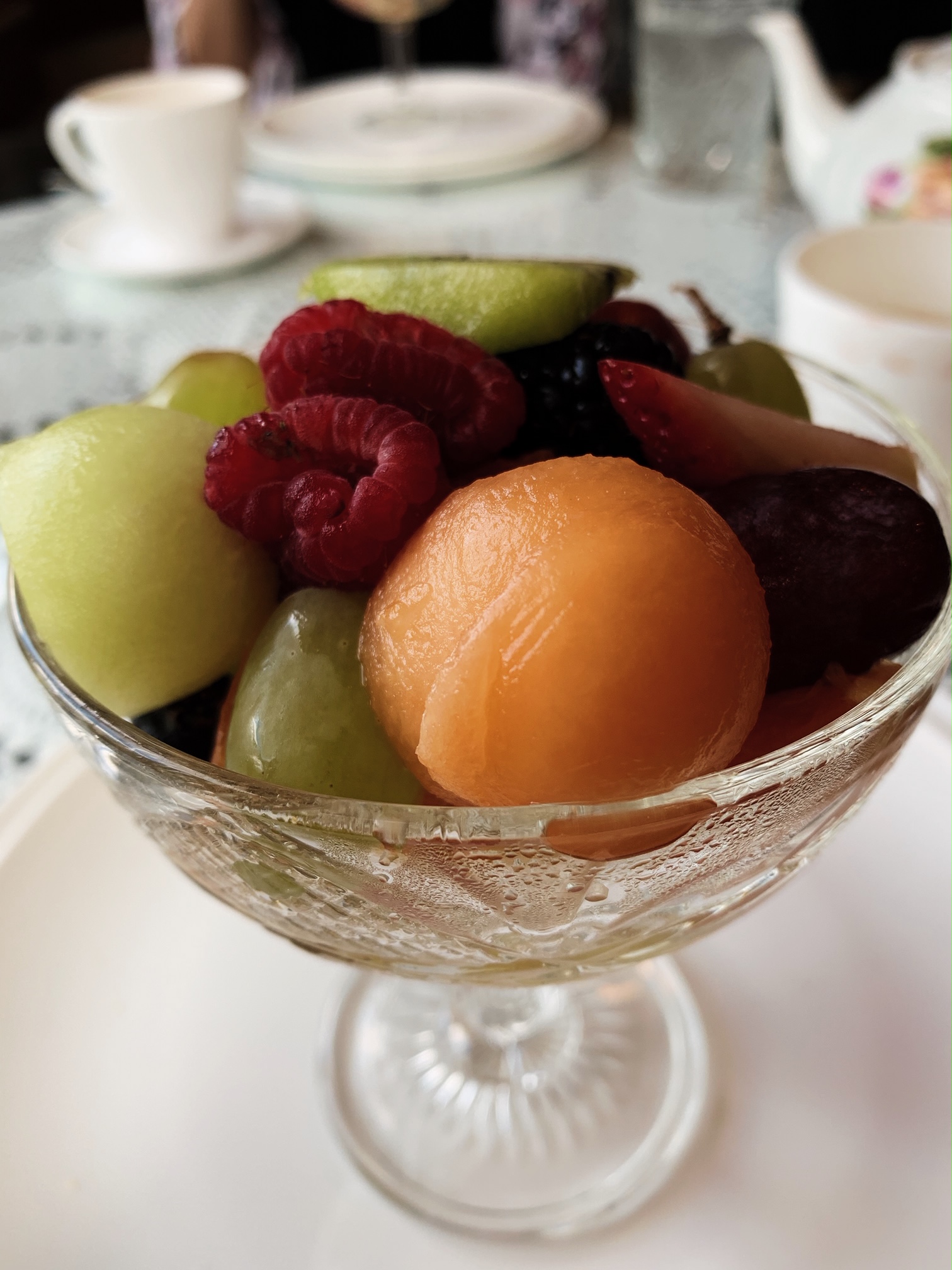 Let’s take a second to praise whoever made these scones. If I could eat one a day for the rest of my life, I’d be good. They were white chocolate, craisin, and apricot. I don’t even like craisins, but I did that day. Served with an herb butter, almond butter, and strawberry preserve, I was in heaven. Following the scones, the next two courses included fruit and our tea “sandwiches.” i can’t tell you what my favorite was because it was all delicious. Even the weird smoked salmon and avocado mousse (which Carli disagrees and thought was too weird of a combo…she might be right as I think back on it).