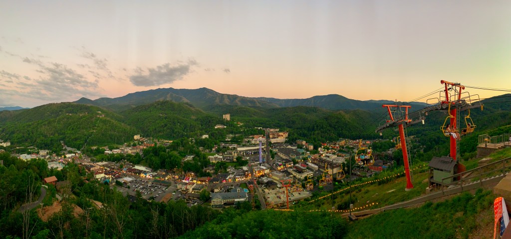 That evening we walked down to the Gatlinburg Skylift Park. If you’re afraid of heights, I wouldn’t recommend it. To get up you have to take basically a ski lift to the top of the mountain.