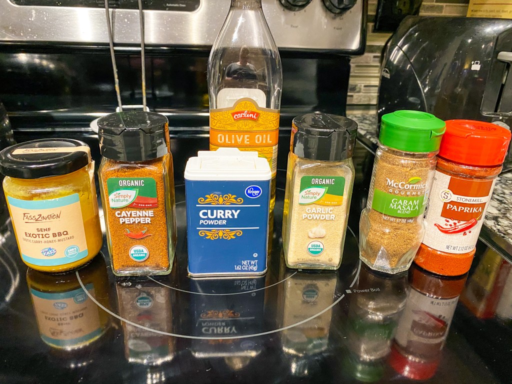 Ignore the garlic powder and go for an actual clove for this, but here’s what your other spices should look like.