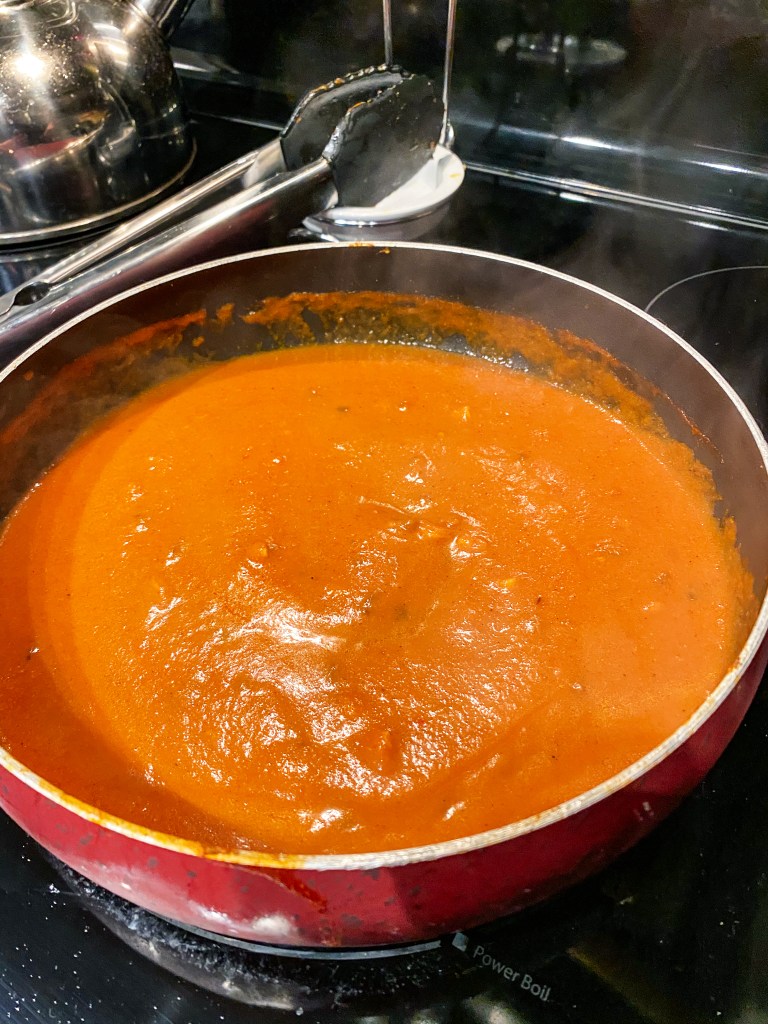 Once it’s up, lower the heat to about a medium from medium high and add in your cream. Make sure to stir it in well and then add in some more butter. Your sauce will thicken as it cooks so don’t worry if it looks watery right now. Add in some more cayenne, garam masala, and curry powder. This is super important because if you don’t add in just a pinch of sugar, it will just be all spice. My butter chicken should have sweet promises of bliss in the beginning and the threat of toilet visits in the end.