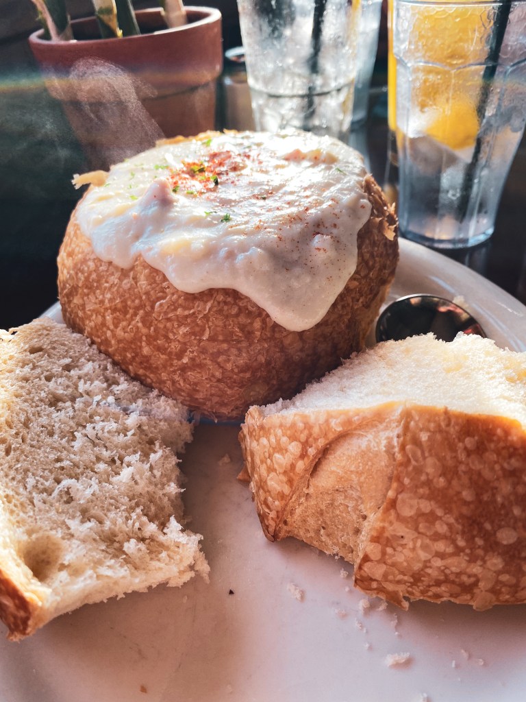 Towards the end of our hike, we noticed the clouds rolling in. The weather on the California coast can change in a moment so always be prepared and bring layers! We decided it was cold enough for a bread bowl of clam chowder. No, it wasn’t gluten free. Yes, I was in pain later. It was worth it.