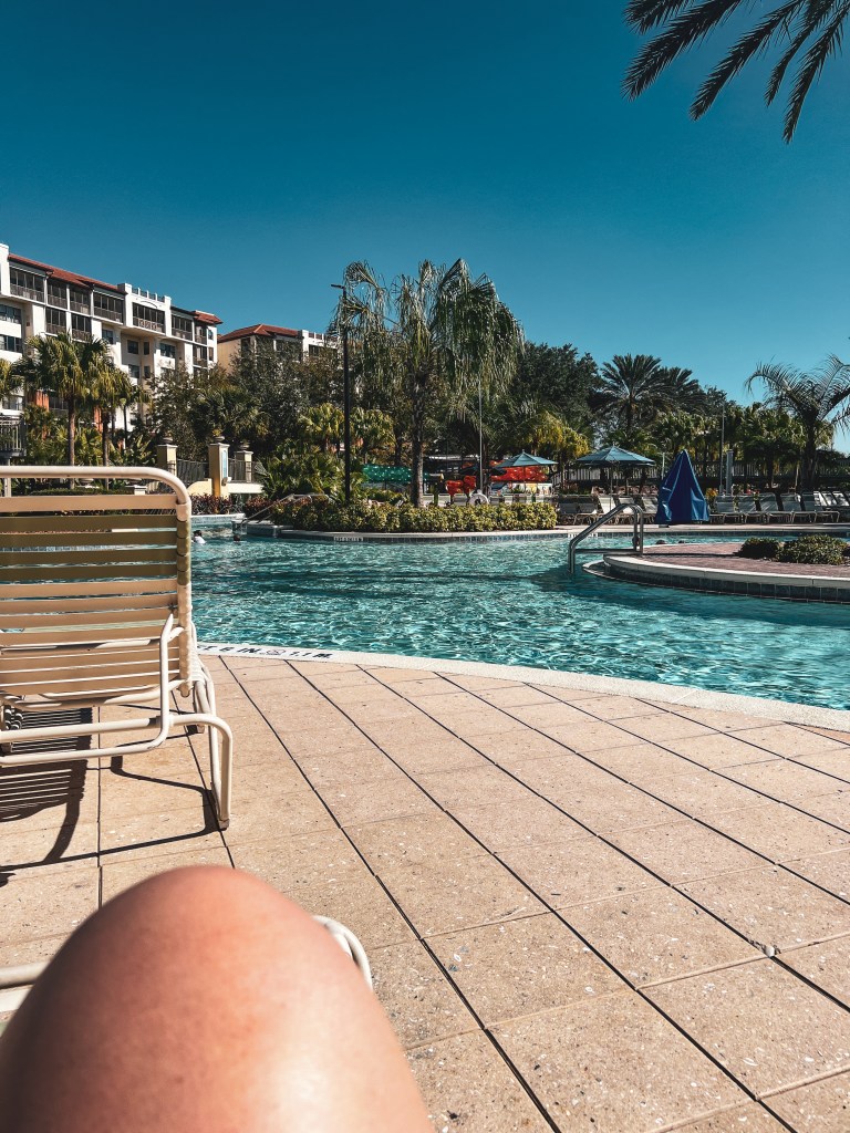 The real joy to this are of the property is the pool area. There are plenty of loungers that you can either be right in the action or tucked away from everyone else in a quiet little nook surrounded by palm trees. We hung out in the main pool area on our “day off” before heading home on Thursday. Even though it was only in the high 60s, those pools are kept at a lovely 82 degrees all year so if you go at the beginning of February like we did, it’s gonna be nice. I spent most of my time drinking poolside while soaking in the sun that refused to appear the day before when we were at Epcot. I’m not bitter or anything.
