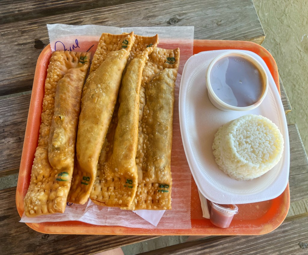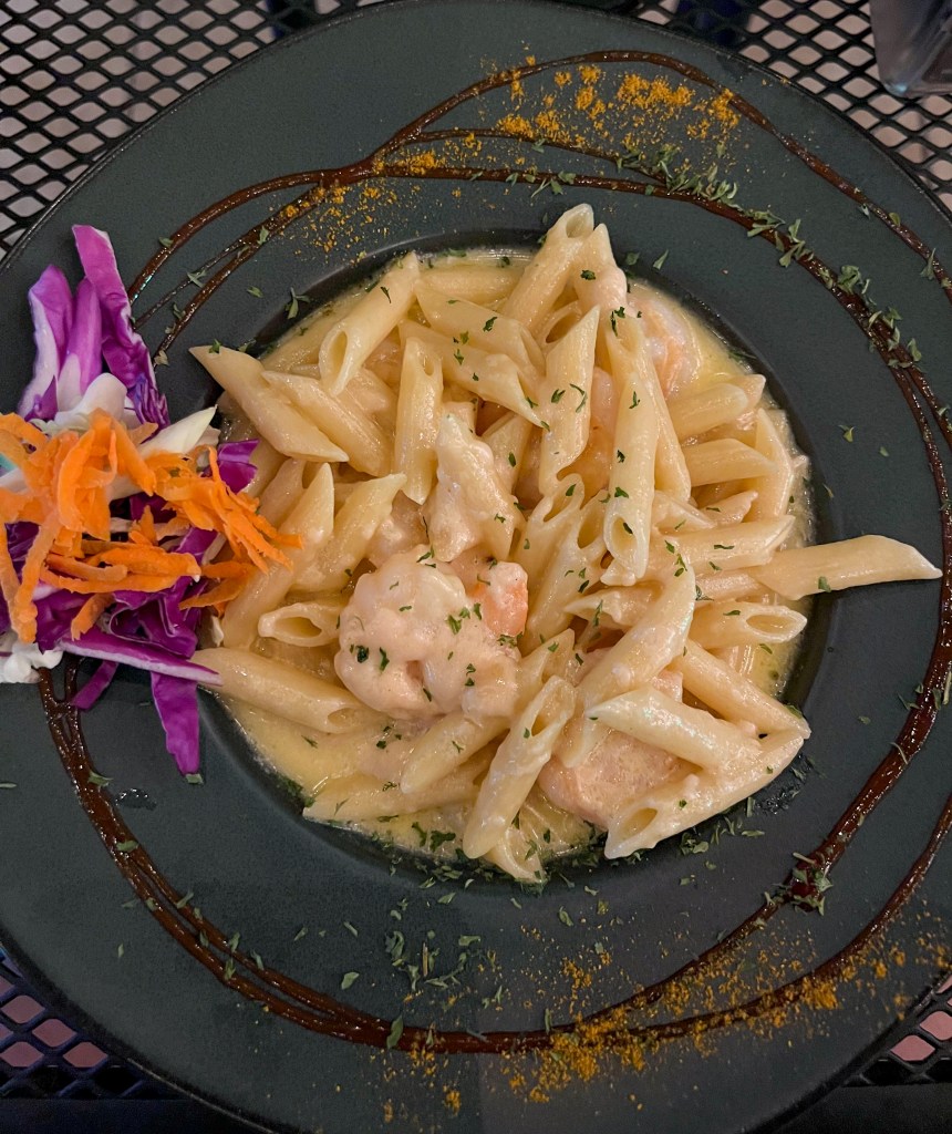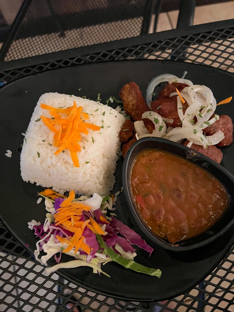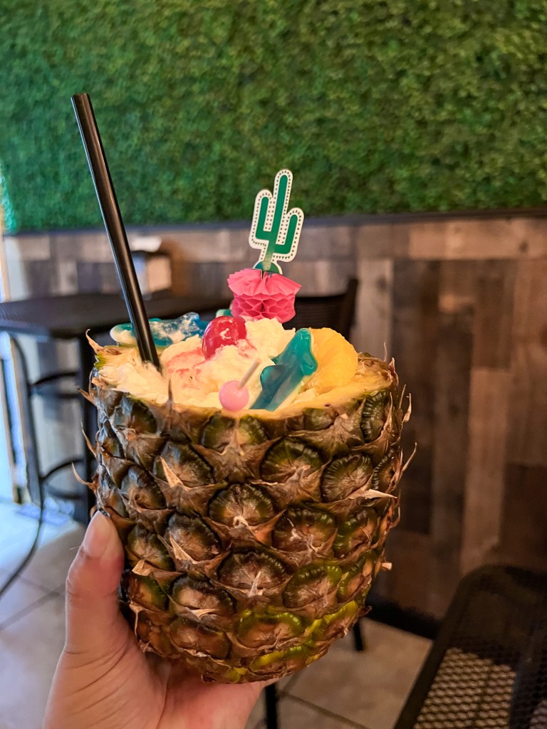 Once the surf started to get a little rough, we headed to the Kioskos de Luquillo for dinner. Don’t attempt going on the weekend, parking is a nightmare. All of these individually owned kiosks offer shopping, nightlife, and a variety of food options. We popped into one called the Rainforest Cafe (no not that one). I noticed a woman drinking a drink from a literal pineapple and was sold. The drinks were fantastic, but the food was spectacular.